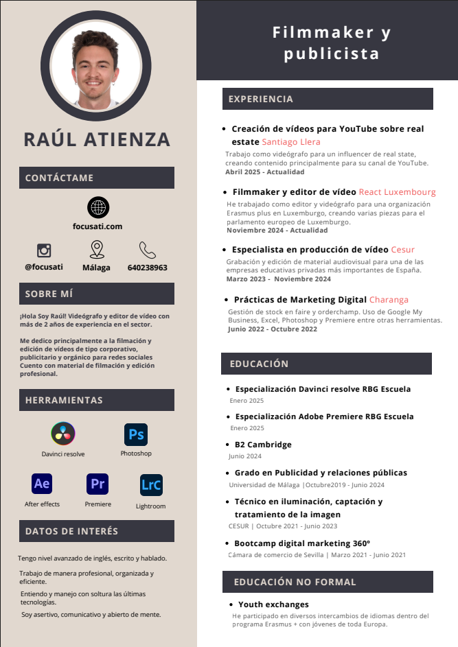 Soy Raúl y me dedico a la edición y creación de vídeo a nivel profesional con más de 2 años de experiencia en el sector.